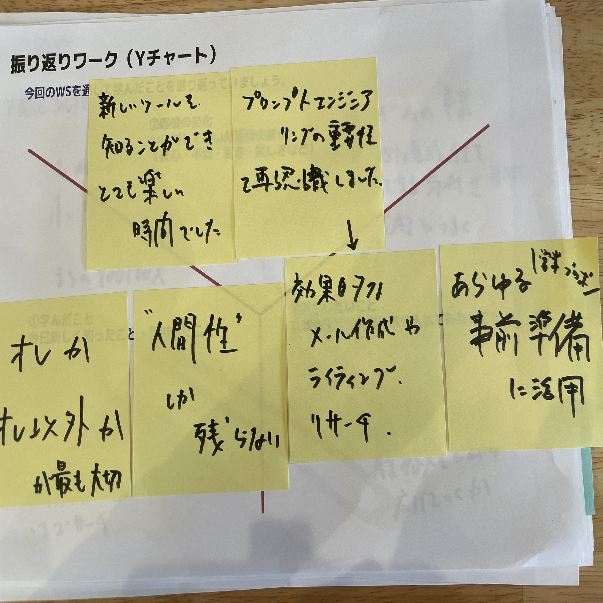 一方で、誤情報のリスクや固有名詞の扱い、依存への注意など、人間が最後に責任を持つ姿勢の重要性も再確認されました。AIが万能ではなく、人の判断や「らしさ」を加えることで初めて実務に馴染むことも共通理解として育まれました。