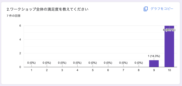 満足度: 第1回は平均9.6点(8〜10点で100%)、第2回は平均9.9点(9〜10点で100%)に達しました,。