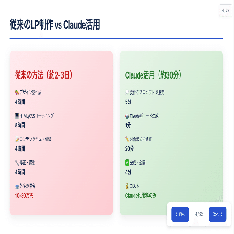 従来:デザイナーやプログラマーに依頼→2〜3日、約10万円