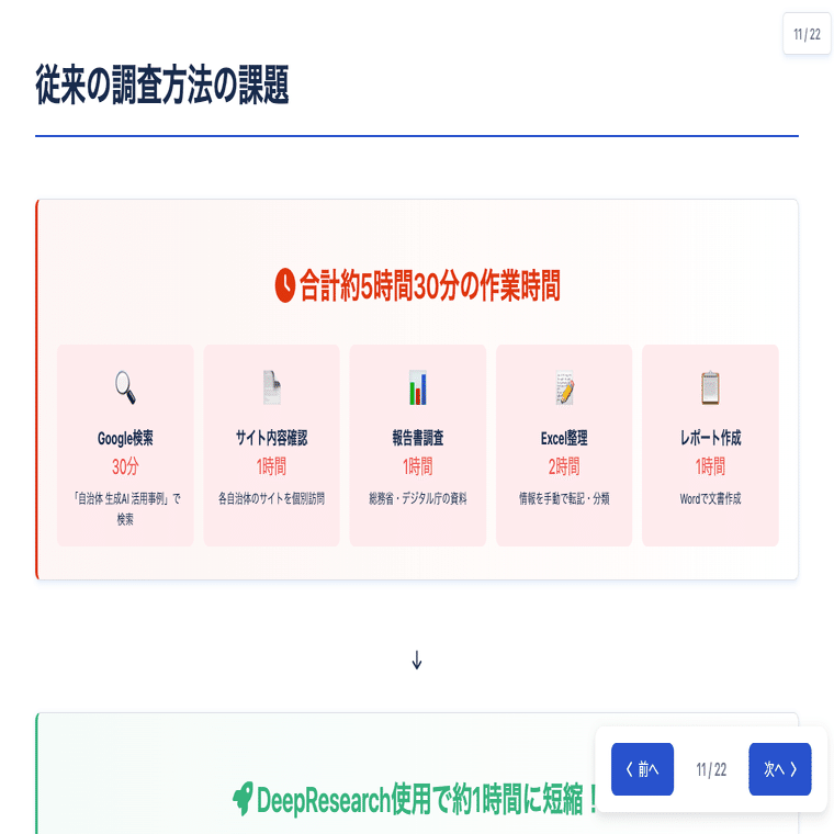 チャットGPTの「DeepResearch」機能を使えば、従来は人間がGoogle検索で複数サイトを巡回していた作業を、AIが自動で行ってレポートにまとめてくれます。