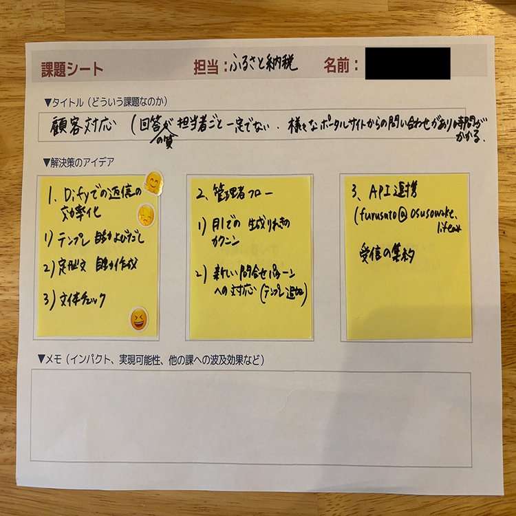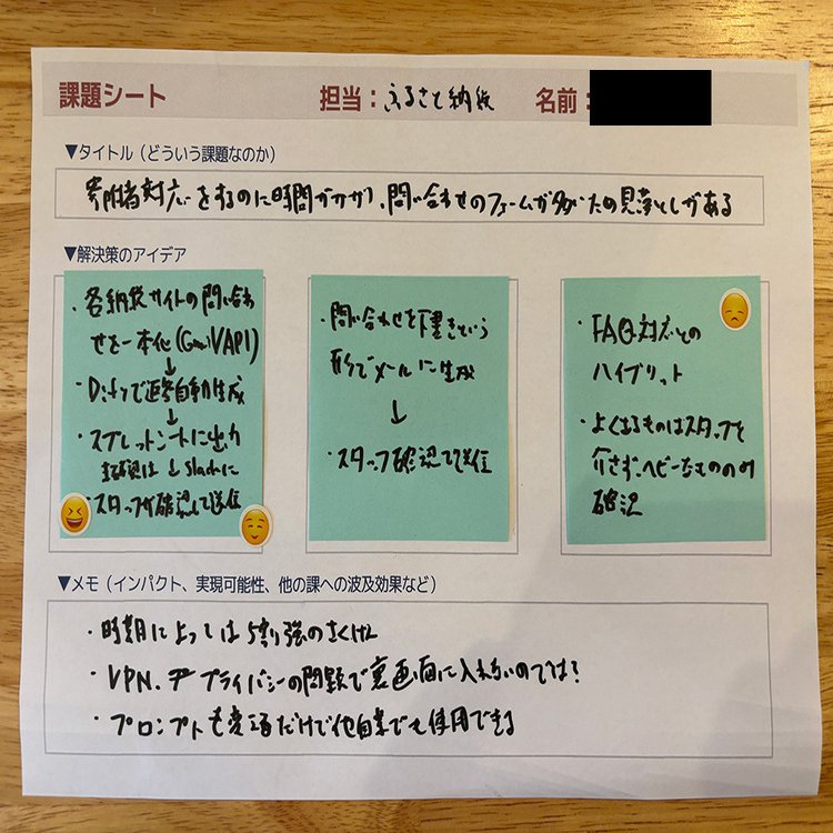課題シートに課題を記入→生成AIに相談→良いと思う解決策を付箋に書く