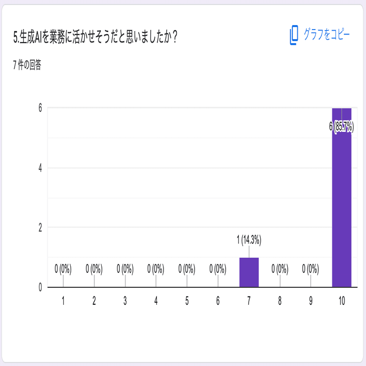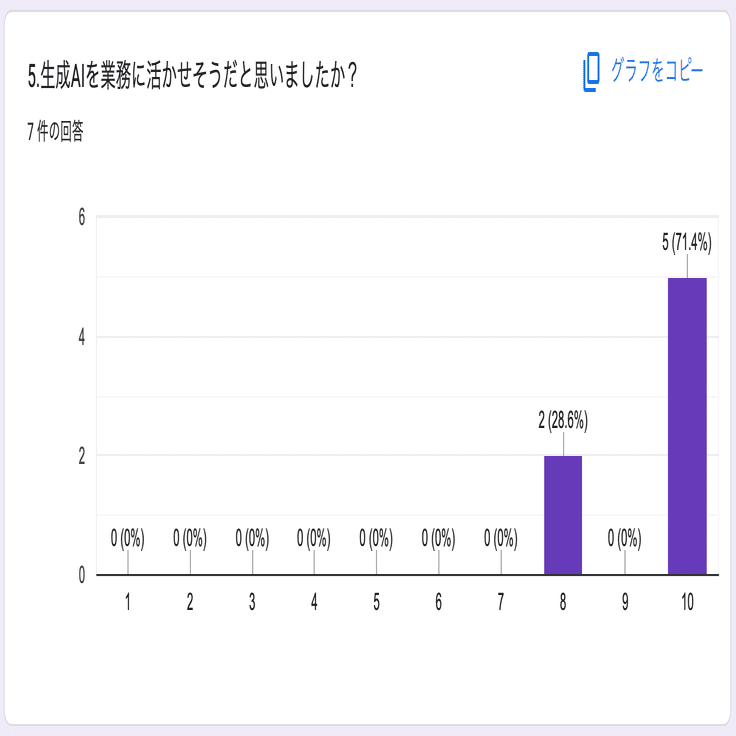 全員が8点以上を評価し、業務活用への強い意欲が示されました